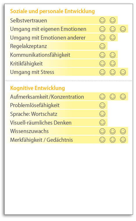 Sanduhr mehrmals umgedreht wird. Das Spiel enthält eine Sanduhr und einen achtseitigen Würfel.